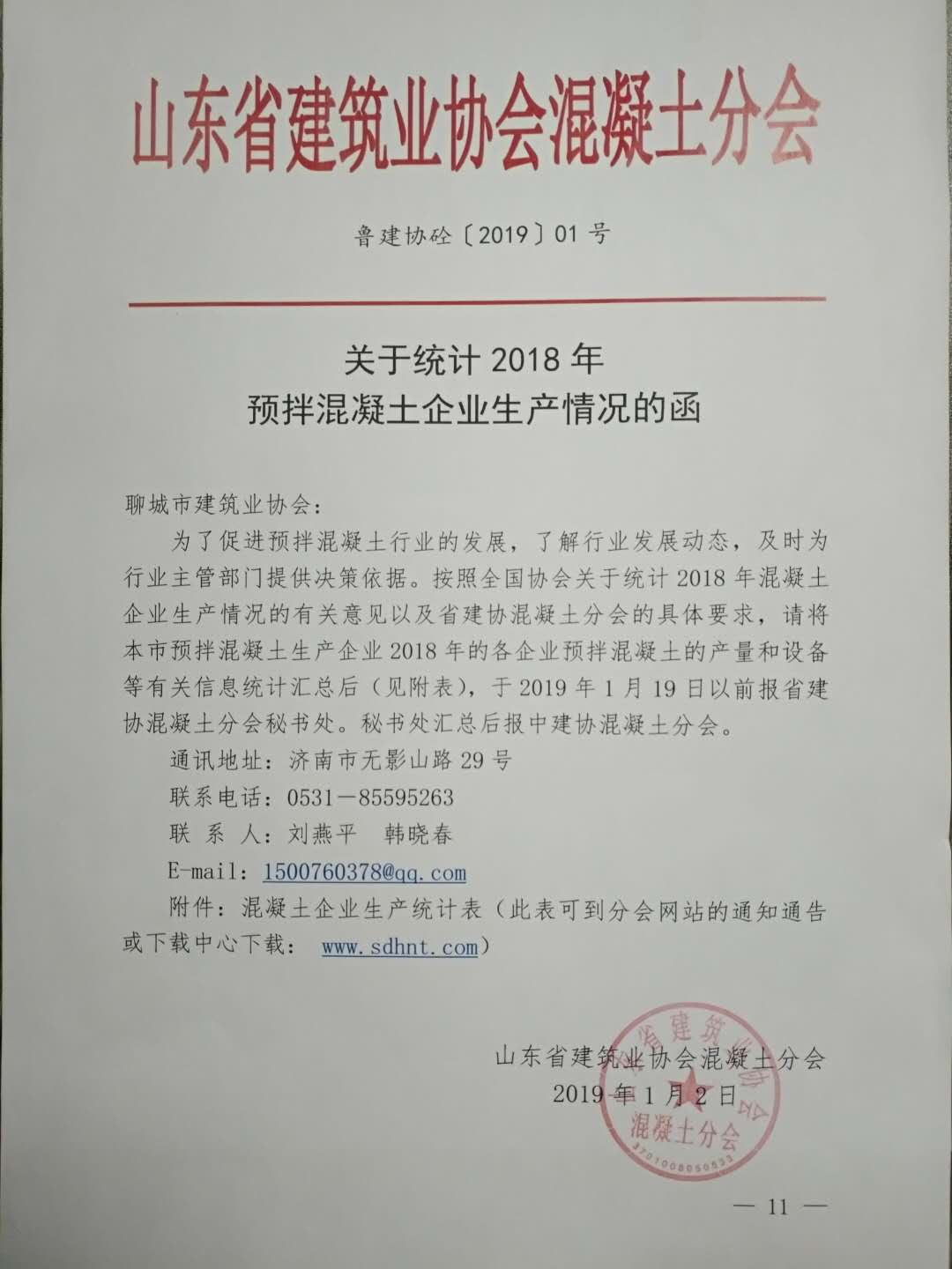 關(guān)于統(tǒng)計(jì)2018年預(yù)拌混凝土企業(yè)生產(chǎn)情況的函請(qǐng)各混凝土企業(yè)于2019年1月16日前將生產(chǎn)統(tǒng)計(jì)表發(fā)送至聊城市建筑業(yè)協(xié)會(huì)郵箱。郵箱地址:lcsjzyxh@qq.com聯(lián)系電話:8310706