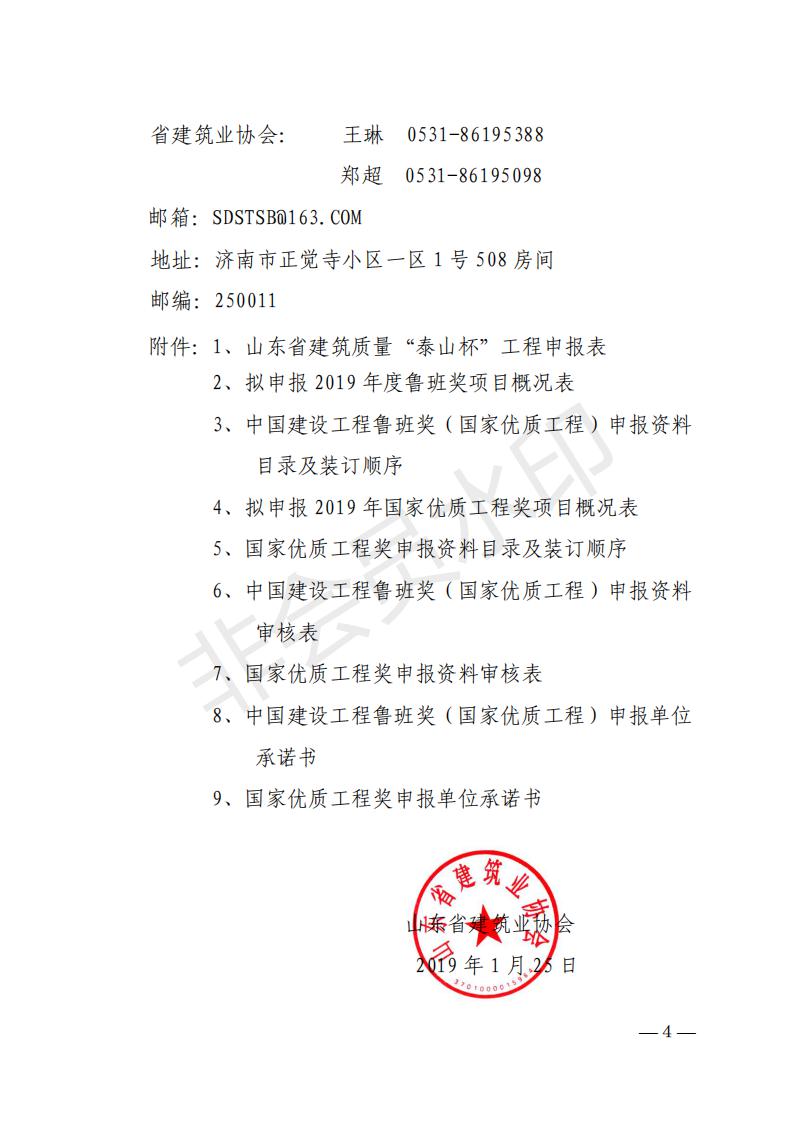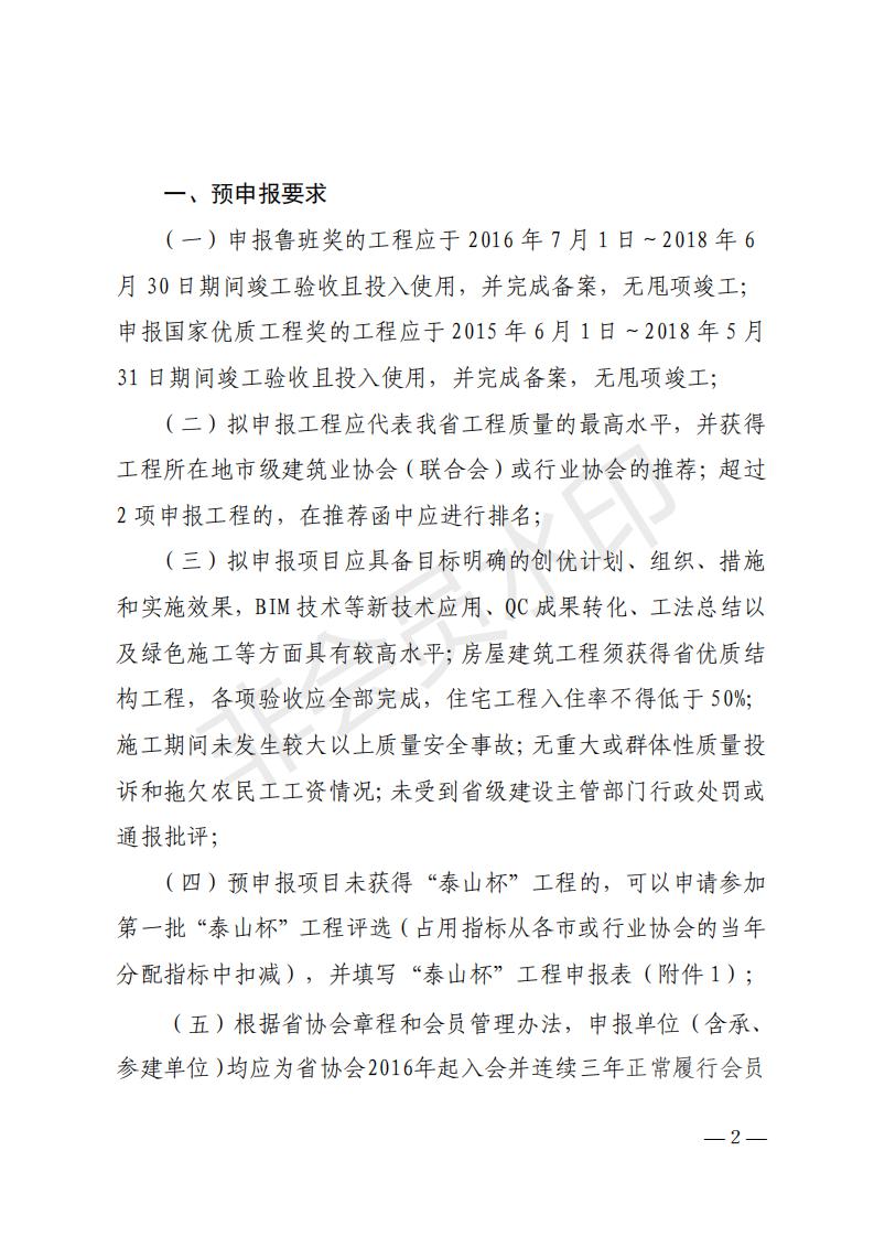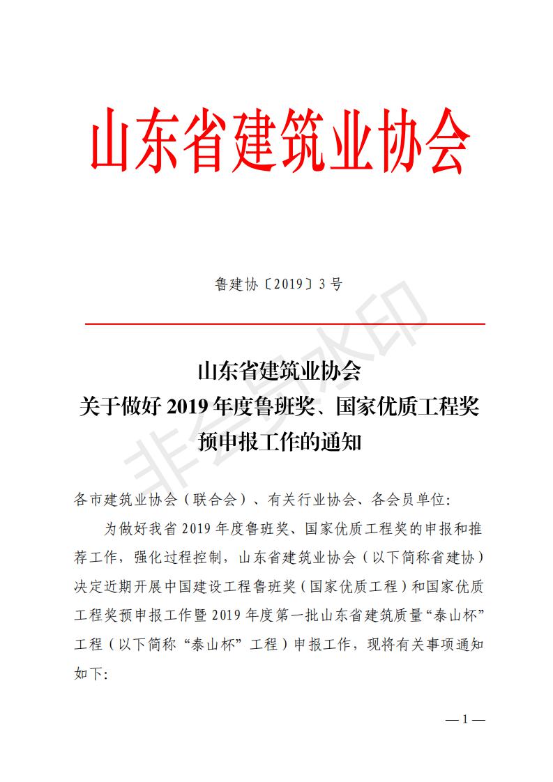 山東省建筑業(yè)協(xié)會(huì) 關(guān)于做好2019年度魯班獎(jiǎng)、國(guó)家優(yōu)質(zhì)工程獎(jiǎng) 預(yù)申報(bào)工作的通知