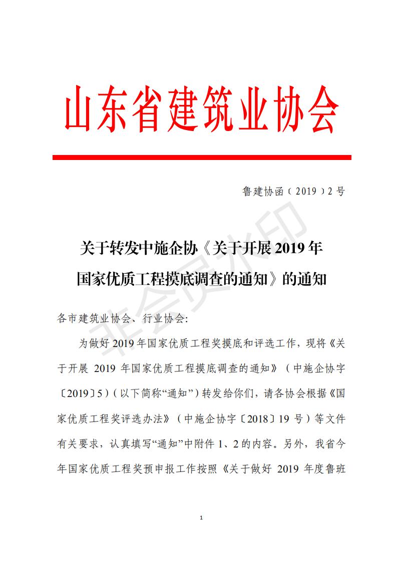 關(guān)于轉(zhuǎn)發(fā)中施企協(xié)          《關(guān)于開(kāi)展2019年國(guó)家優(yōu)質(zhì)工程摸底調(diào)查的通知》的通知