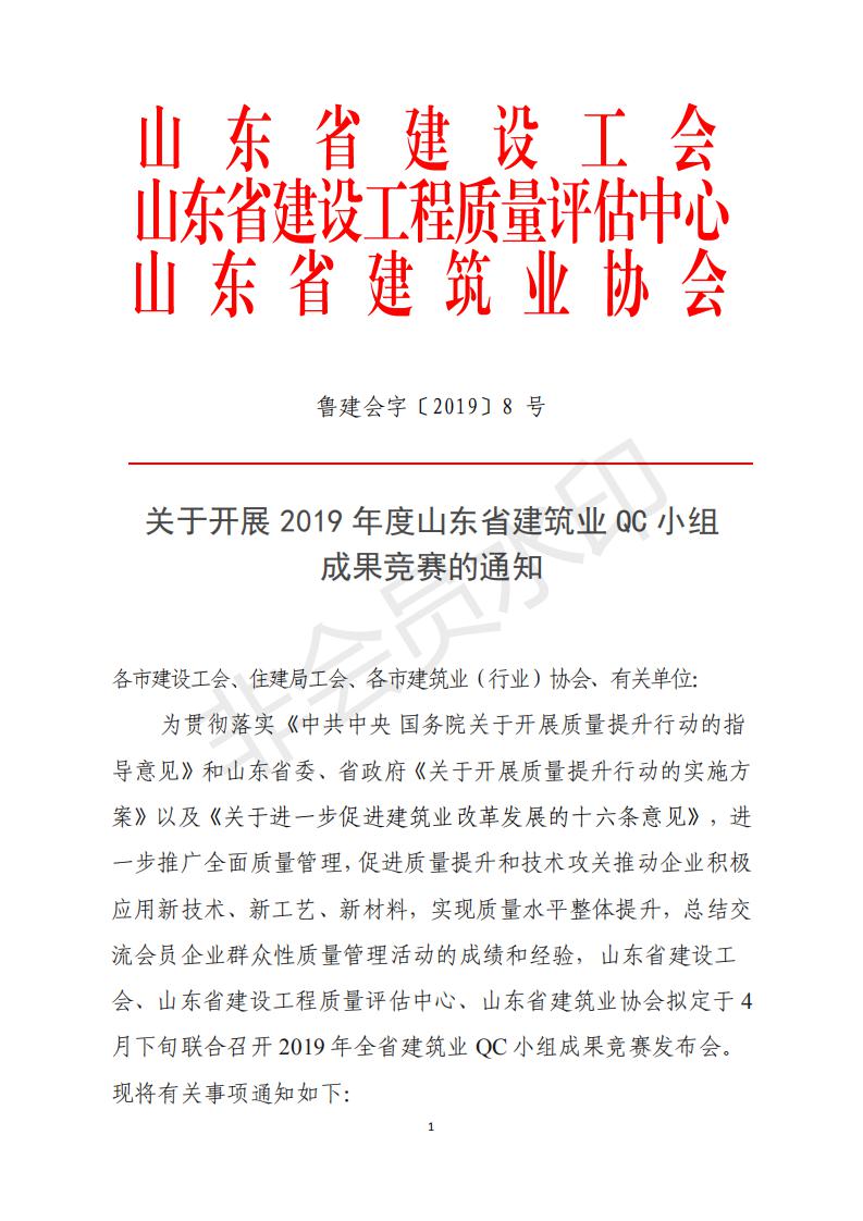 關(guān)于開(kāi)展2019年度 山東省建筑業(yè)QC小組成果競(jìng)賽的通知