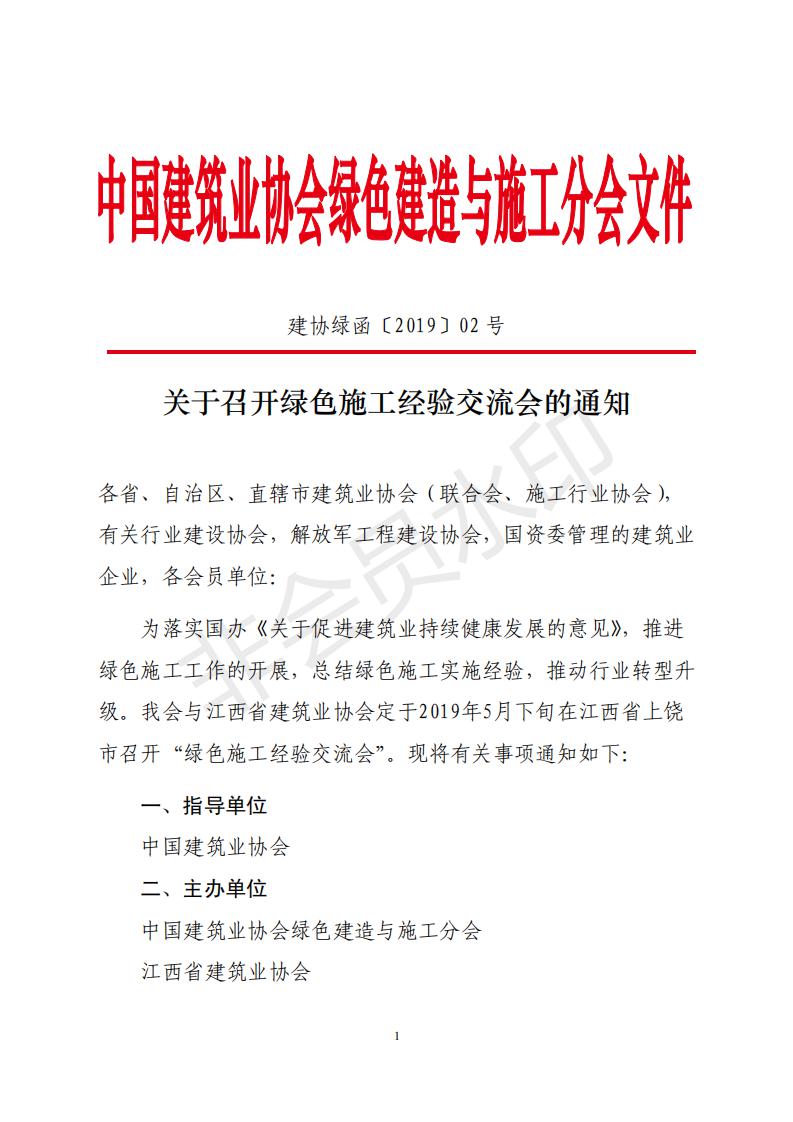 關(guān)于召開綠色施工經(jīng)驗交流會的通知