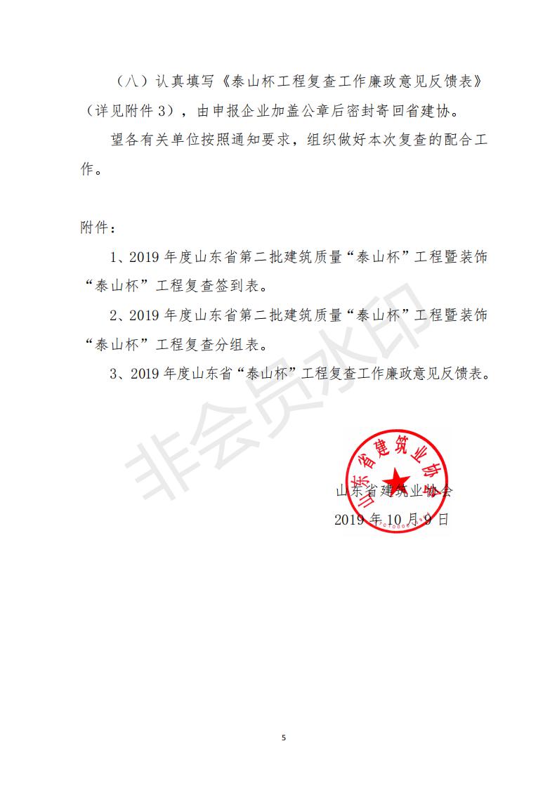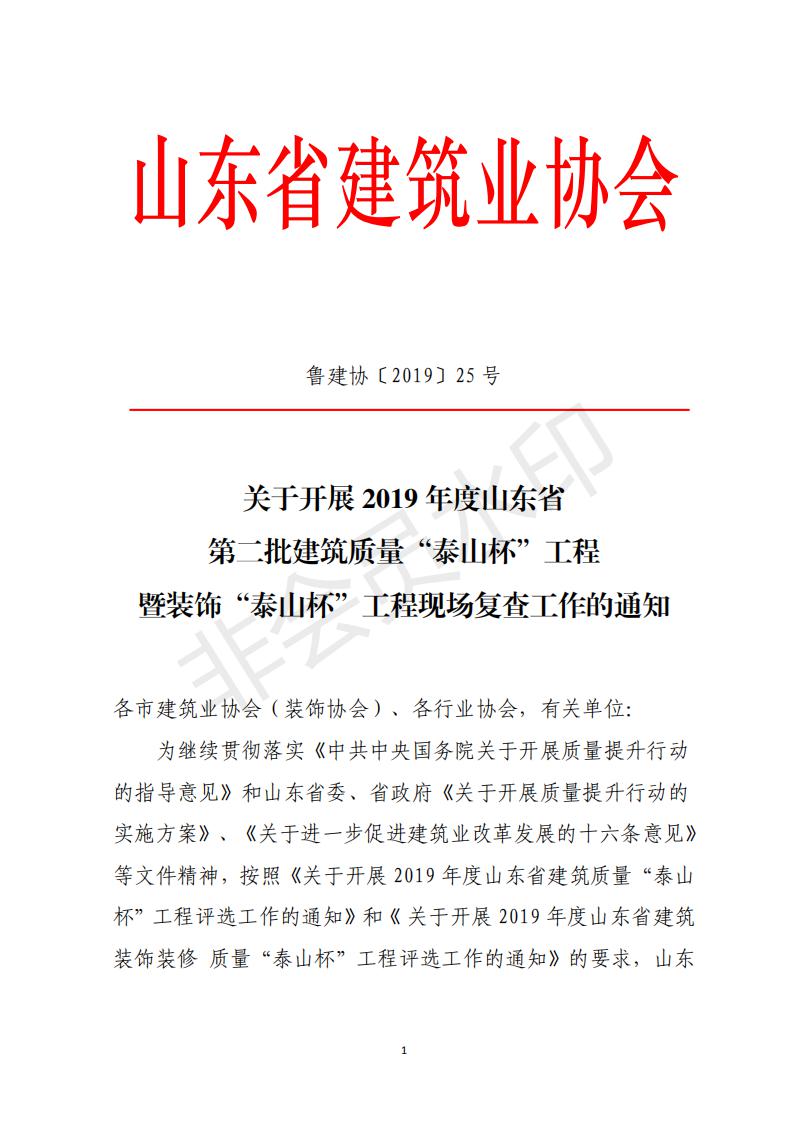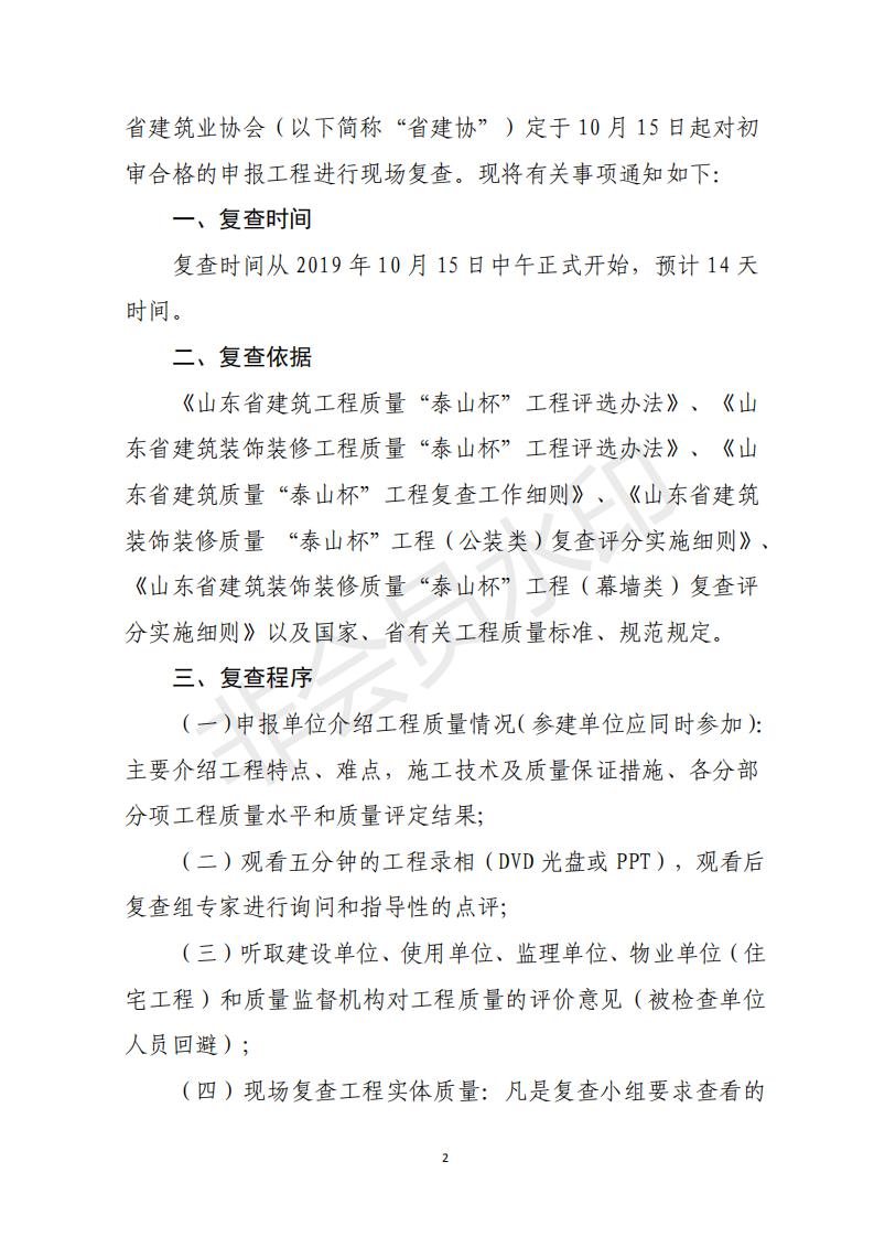 暨裝飾“泰山杯”工程現(xiàn)場(chǎng)復(fù)查工作的通知