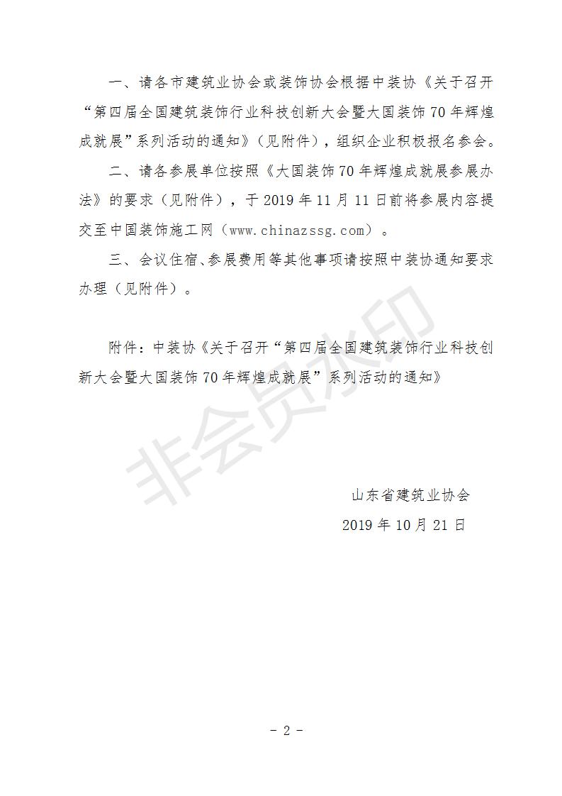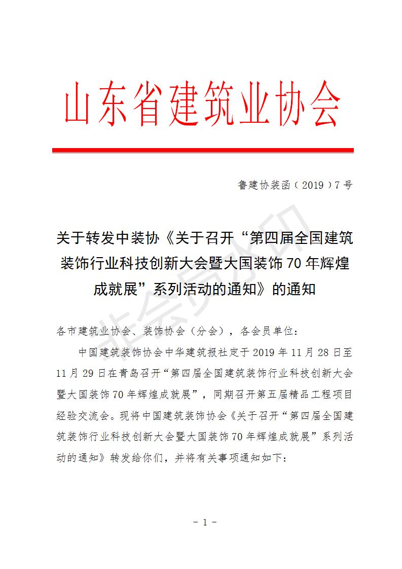 ![]() | 附件:中裝協(xié)《關(guān)于召開“第四屆全國建筑裝飾行業(yè)科技創(chuàng)新大會暨大國裝飾70年輝煌成就展”系列活動的通知》 |