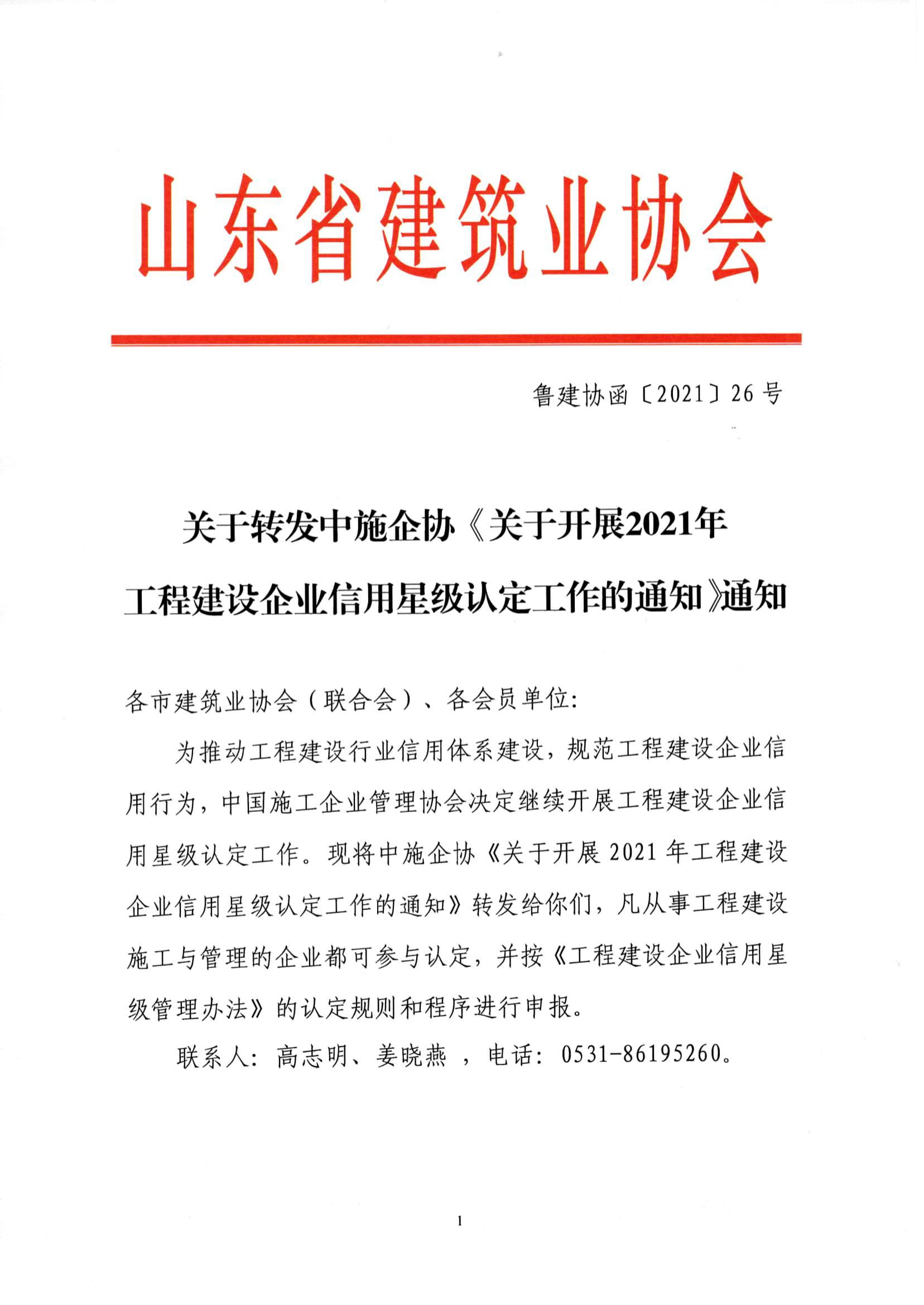 ![]() | 附件:中施企協(xié)《關(guān)于開展2021年度工程建設(shè)企業(yè)信用星級認(rèn)定工作的通知》 |