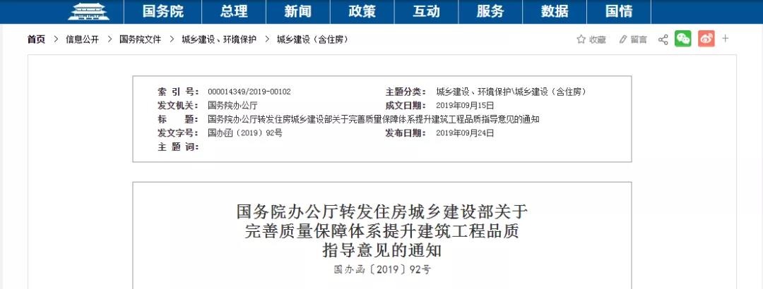 關(guān)于完善質(zhì)量保障體系提升建筑工程品質(zhì)的指導(dǎo)意見