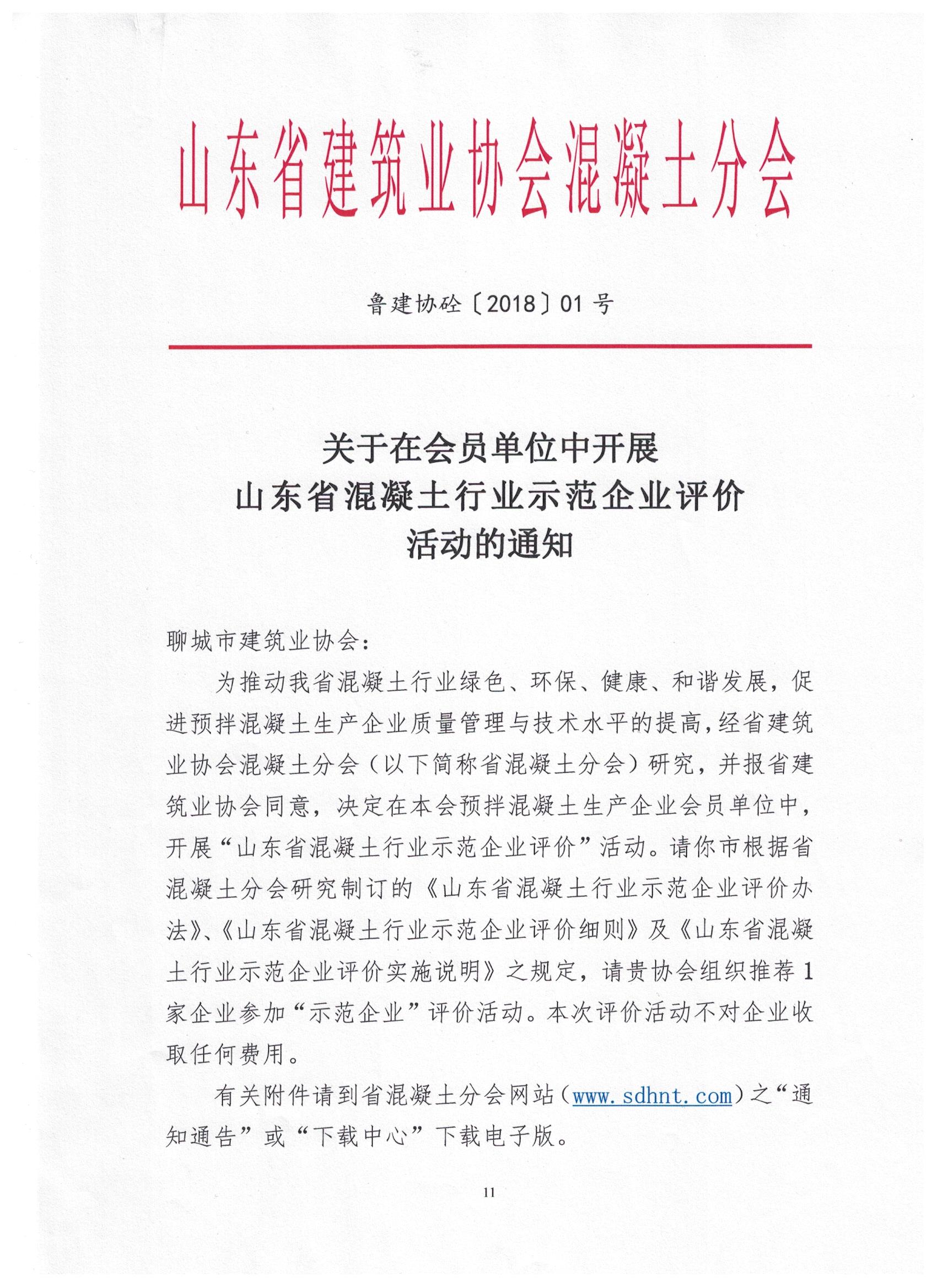 各會(huì)員單位: 山東省建筑業(yè)系會(huì)混凝土分會(huì)正在開(kāi)展“山東省混凝土行業(yè)示范企業(yè)評(píng)價(jià)”活動(dòng),聊建協(xié)將推薦我市企業(yè)參加“示范企業(yè)”評(píng)選。這將對(duì)我市預(yù)拌混凝土生產(chǎn)企業(yè)質(zhì)量管理和技術(shù)水平的提高起到極大的促進(jìn)作用,且獲得“示范企業(yè)”的單位,將具備推薦參評(píng)“中國(guó)混凝土行業(yè)優(yōu)秀企業(yè)”的基本條件?,F(xiàn)將具體參選條件和其他事項(xiàng)公布如下,望達(dá)到標(biāo)準(zhǔn)的企業(yè)積極申報(bào),擇優(yōu)推薦。 一、我市建筑業(yè)協(xié)會(huì)會(huì)員; 二、企業(yè)須為省混凝土分會(huì)3A級(jí)以上的“信用企業(yè)”; 三、通過(guò)GB/T19001-2008(ISO9001-2008)質(zhì)量體系認(rèn)證,評(píng)價(jià)單位與認(rèn)證單位名稱一致,證書(shū)在有效期內(nèi)。 四、申報(bào)企業(yè)必須對(duì)申報(bào)材料的真實(shí)、有效性負(fù)責(zé)。凡因提供虛假材料、證明或證書(shū)而騙取“示范企業(yè)”榮譽(yù)的,一經(jīng)查實(shí),省混凝土分會(huì)將對(duì)其通報(bào)批評(píng),并取消參加下屆評(píng)價(jià)資格。同時(shí),由市建協(xié)負(fù)責(zé)將其“示范企業(yè)”證書(shū)、牌匾收回,取消其稱號(hào)。